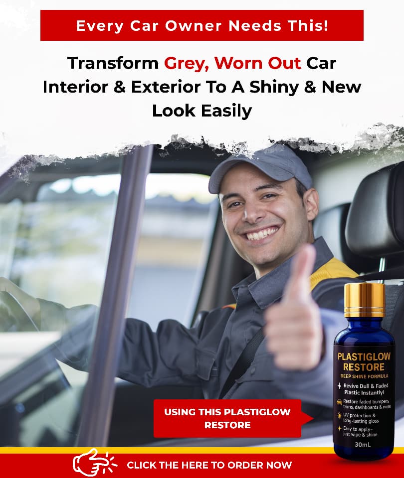 Introducing PlastiGlow Restore—the revolutionary deep-shine formula that doesn’t just cover the fade, it revitalizes the plastic from the inside out, making your car look brand new again with a single, simple wipe.