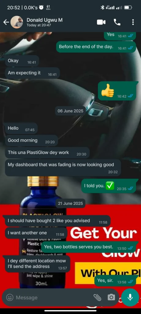 Over time, the harsh Nigerian sun, heavy rain, and dust don’t just dirty your car—they chemically break down your plastic and vinyl. This process is called oxidation, and it creates that ugly, chalky, faded look that even an expensive car wash can’t fix.